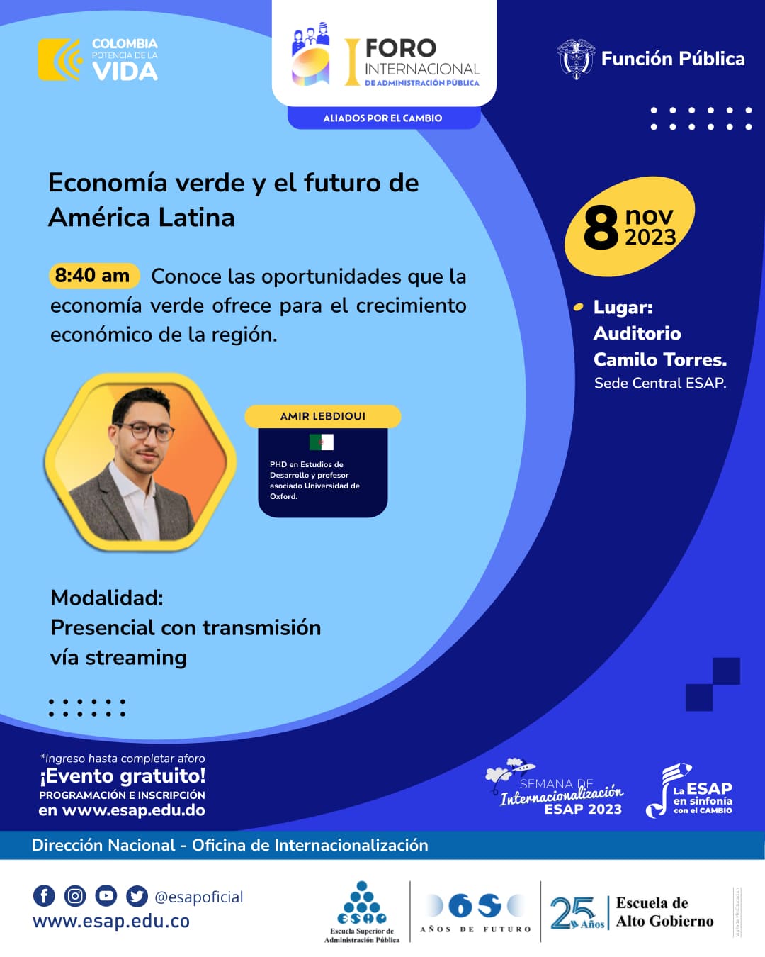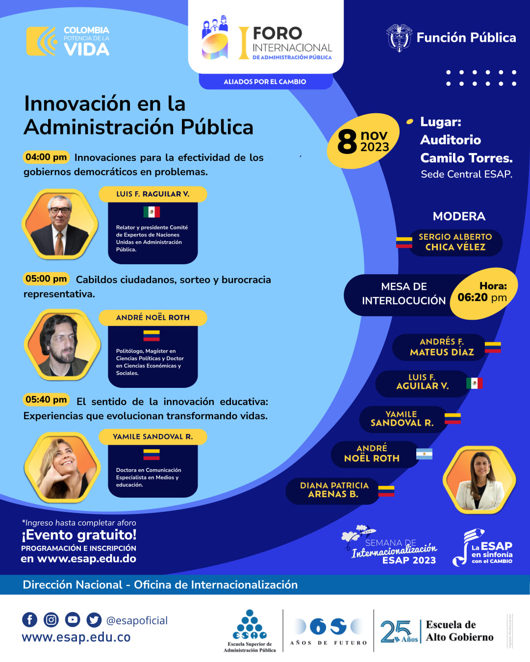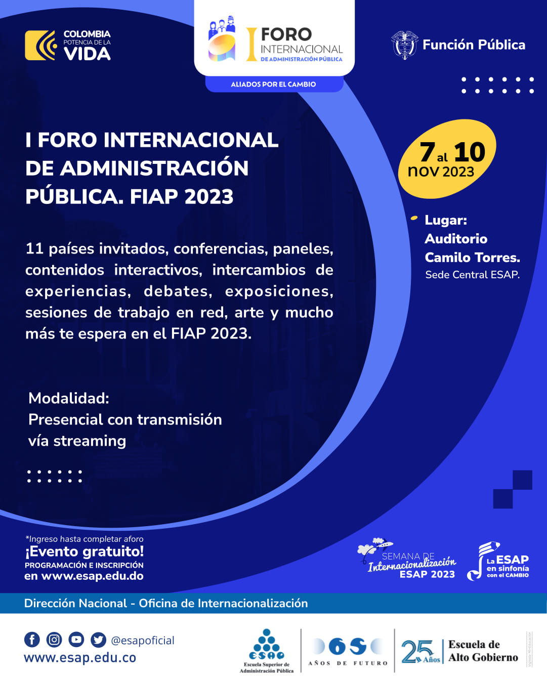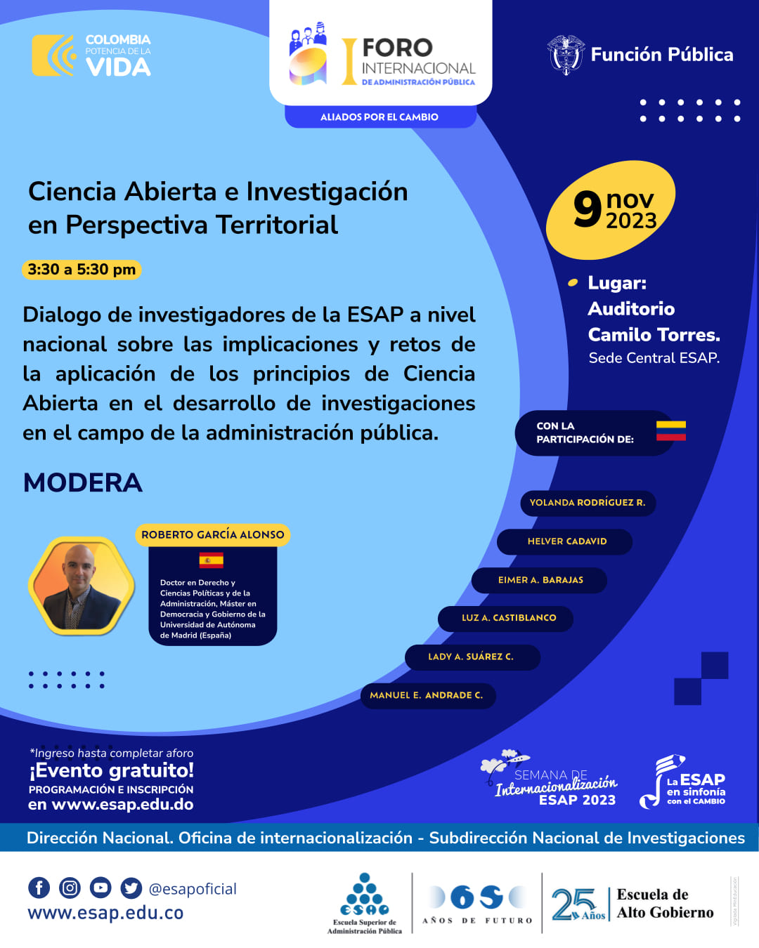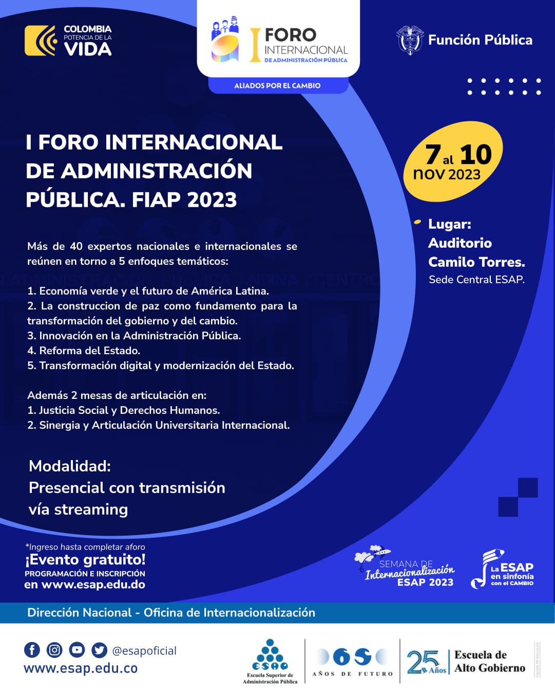 Un escenario académico que reúne representantes nacionales e internacionales, altos funcionarios del Estado, formuladores de políticas públicas, docentes, profesionales, investigadores, estudiantes, servidores públicos y expertos en el campo de la administración pública.