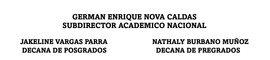 La Subdirección Nacional Académica y las decanaturas de pregrados y posgrados reiteran la disposición y gestión irrestricta para garantizar que las actividades inherentes a la formación para la vida cumplan con los requerimientos de calidad establecidos en la normatividad vigente institucional, así como el cumplimiento de los parámetros señalados por el Ministerio de Educación Nacional para la oferta y desarrollo de los programas académicos.