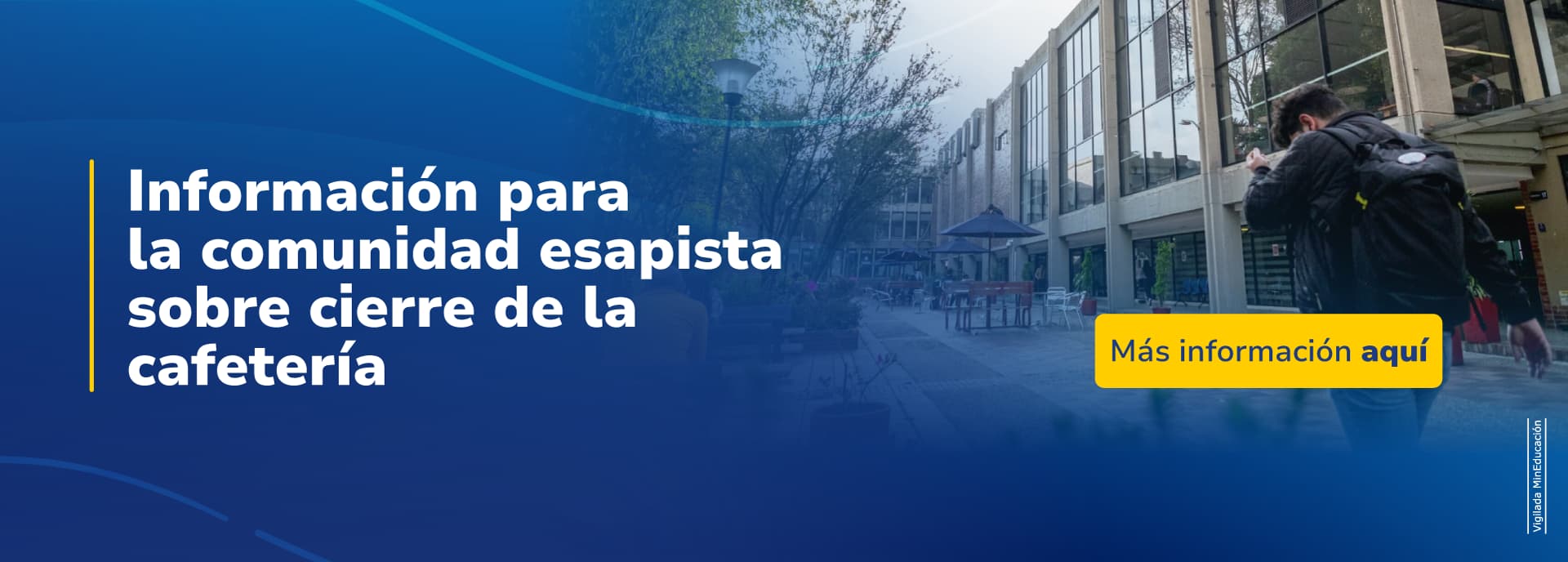 Bogotá, 1° de mayo. Informamos que, debido a cortes de agua programados para la localidad de Teusaquillo el pasado 29 de abril, y ante los sabidos riesgos sanitarios que la medida distrital conllevó, la administración de la Escuela se vio obligada a cerrar temporalmente el servicio de cafetería durante el día 30 de abril.