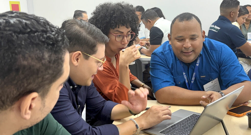 El profesor Solorzano trabaja con sus compañeros docentes en la generación de estrategias en el marco de un Encuentro Académico Territorial en Barranquilla. Foto: Jeffry de Jesús Almarales Nieto.