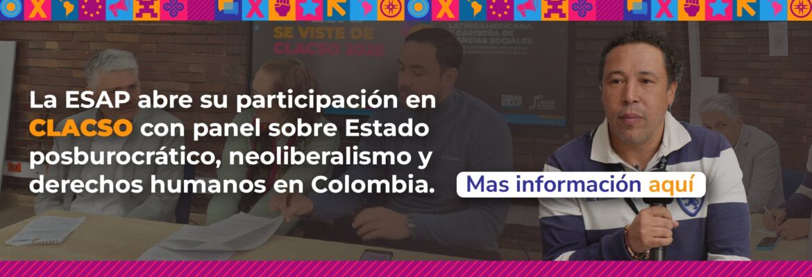 Con el panel ‘Estado posburocrático en Colombia, medio siglo después del neoliberalismo y las violaciones a los derechos humanos’, la Escuela Superior de Administración Pública (ESAP) inició su participación en la X Conferencia Latinoamericana y Caribeña de Ciencias Sociales (Clacso). … Sigue leyendo La ESAP abre su participación en CLACSO con panel sobre Estado posburocrático, neoliberalismo y derechos humanos en Colombia