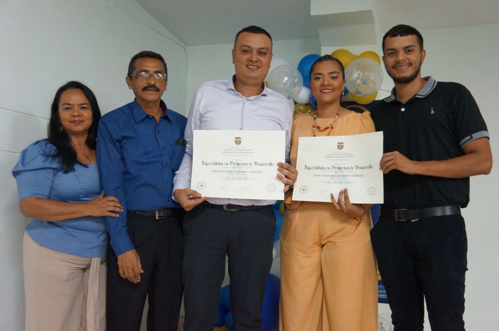 Esta es una prueba fehaciente del impacto que genera la Escuela en los territorios, llevando la oportunidad de profesionalización y cualificación profesional a los habitantes. Tal es el caso de los hermanos pradereños Yenci Marian Correa Campaña y Omar Andrés Correa Campaña, quienes obtuvieron grado distinguido como especialistas en Proyectos de Desarrollo.