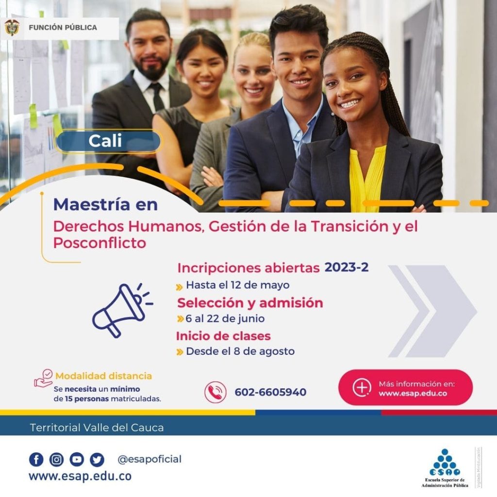 Con relación a la oferta académica de posgrado, en la ESAP Valle se habilitaron inscripciones para la Maestría en Administración Pública y la Maestría en Derechos Humanos, Gestión de la Transición y el Posconflicto.