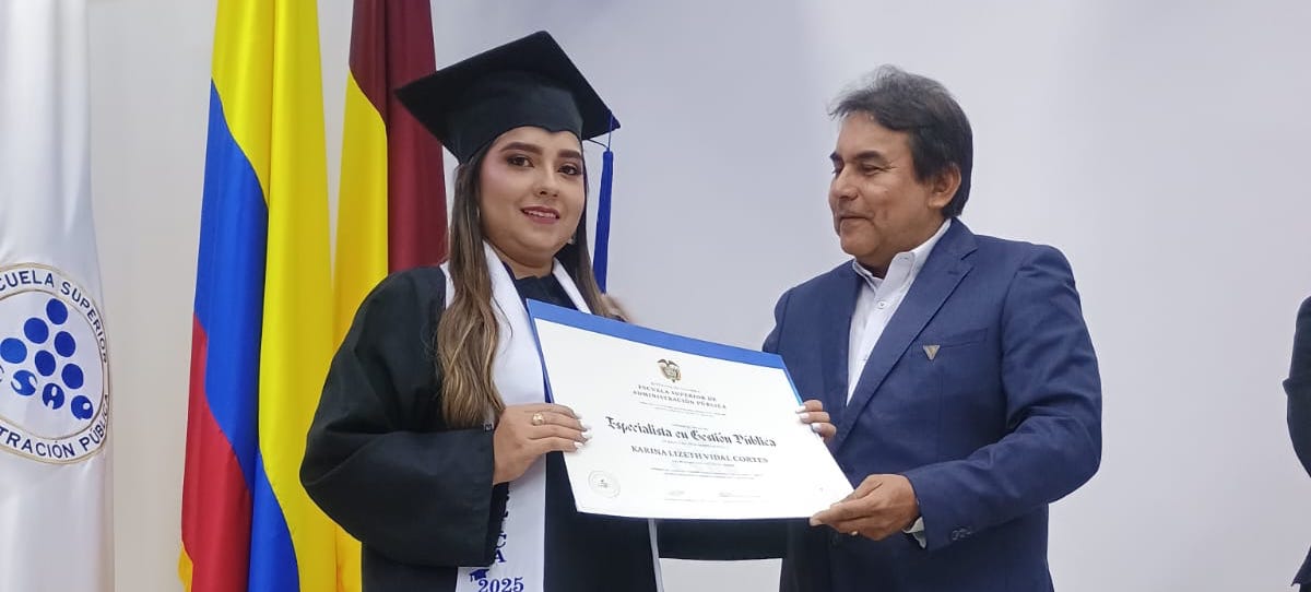«Con la llegada de la modalidad de educación híbrida a la Escuela Superior de Administración Pública (ESAP), pude terminar mi pregrado en Administración Pública Territorial a la vez que cuidaba a mi hijo recién nacido», contó Karina Vidal Cortes, quien recordó que su historia con la ESAP empezó con un programa de pregrado que le abrió una ventana de oportunidades para alcanzar, en pleno 2025, su título como especialista en gestión pública, que recibió el pasado 29 de agosto en la ceremonia de grado celebrada en el Cetap de Ibagué, Tolima.