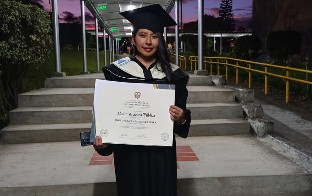 “Mi paso por la Escuela de Administración Pública estuvo llena de significativos aprendizajes, amistades y experiencias, dúrate estos 5 años me destaque como una de las mejores estudiantes, me llevo todos los conocimientos y saberes compartidos por los profesores y compañeros esapistas, con el objetivo de aportar, en la búsqueda de la pervivencia en el tiempo y en el espacio de nuestra identidad cultural y ancestral, como comunidad indígena haciendo prevalecer sus derechos, equidad y respeto por la misma”. Agregó Ingrid.