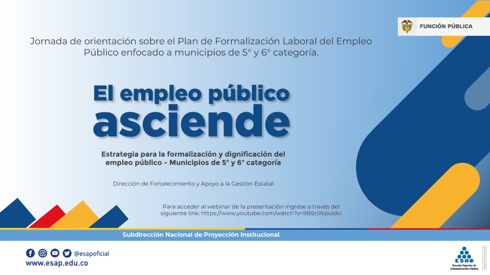 - La Escuela Superior de Administración Pública abrió un espacio de capacitación dirigido a los municipios de 5° y 6° categoría en aras de acompañar la implementación del Plan de Formalización del Empleo Público.