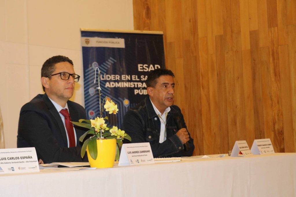 Este evento contó con la presencia de la directora Nacional (E) de la ESAP, María Clara Rodríguez, el enlace de Alto Gobierno para Nariño, Luis Carlos España, el director territorial Nariño del IGAC, Edgar Roberto Mora, los expertos temáticos: Galo Clemente Cristancho de la ESAP Sede Central, Fabio Germán Narváez director territorial de la Agencia Nacional De Tierras – ANT. Luis Andrés Zambrano Juez lll de Restitución de Tierras y Robert Mauricio Ramos de CORPONARIÑO.