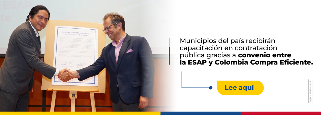 Bogotá, 17 de marzo de 2023. (Comunicaciones ESAP) La Escuela Superior de Administración Pública -ESAP y la Agencia Nacional de Contratación Pública – Colombia Compra Eficiente, firmaron un convenio interadministrativo con el objetivo de unificar esfuerzos para la formación, capacitación y asistencias técnicas en temas estratégicos de la contratación pública.