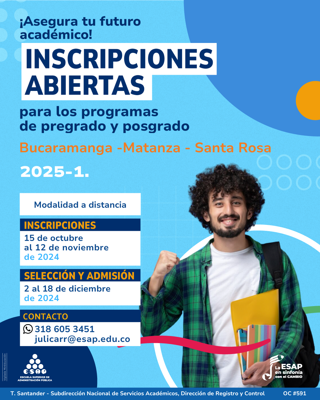 Inicio » Inicio » Santander noticias » No te quedes sin tu cupo, ¡Inscríbete ahora en la ESAP!