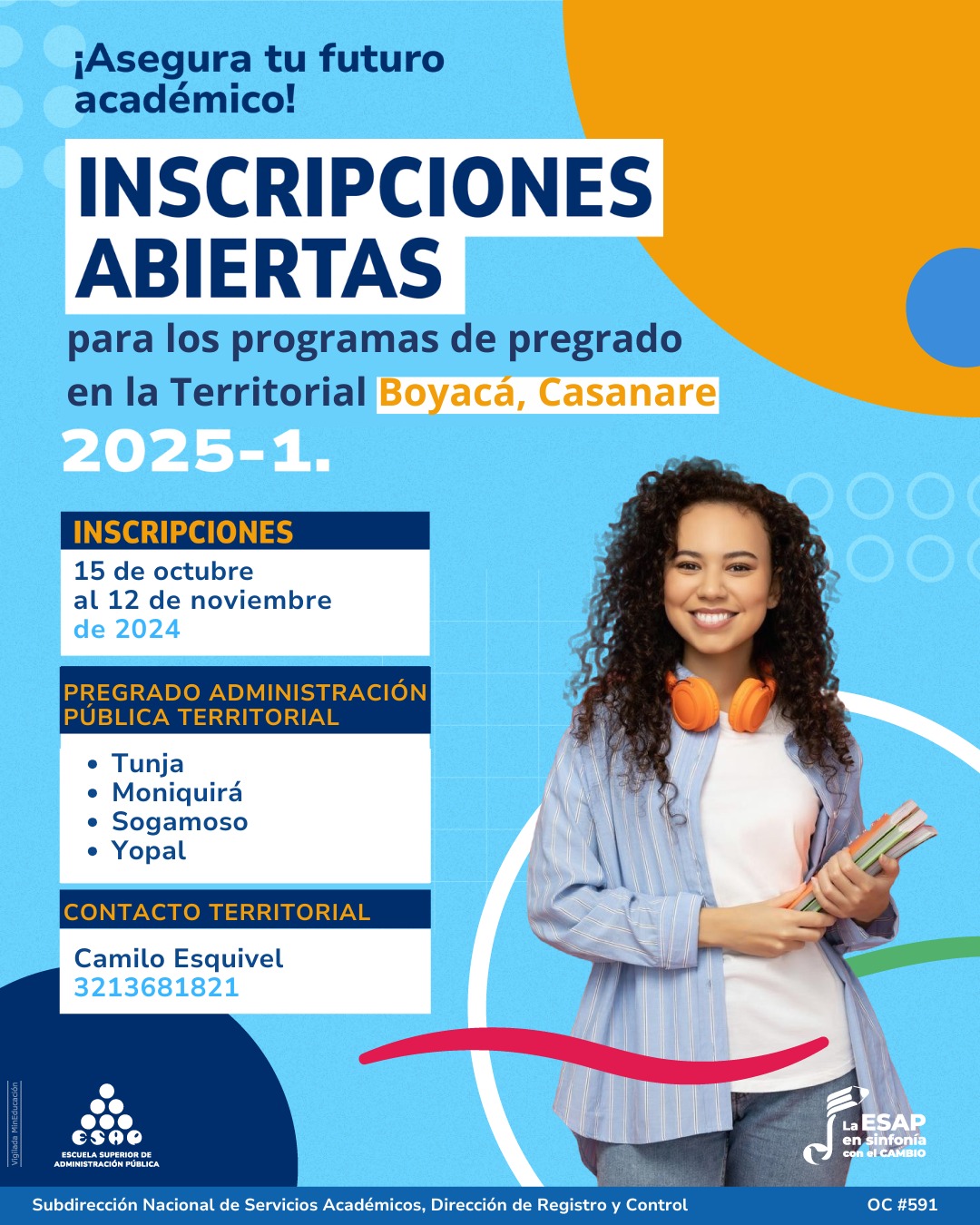Boyacá, Casanare, 6 de noviembre de2024 (Comunicaciones ESAP). La Escuela Superior de Administración Pública (ESAP) Territorial Boyacá, Casanare invita a estudiantes, profesionales y servidores públicos de la región a conocer su oferta académica para el primer semestre de 2025. En esta oportunidad, la ESAP ofrece programas de pregrado en la modalidad a distancia tradicional, dirigidos a los municipios de Tunja, Moniquirá, Sogamoso y Yopal. Las inscripciones estarán abiertas hasta el 12 de noviembre, brindando una excelente oportunidad para fortalecer competencias en administración pública y contribuir al desarrollo del sector público en los territorios de Boyacá y Casanare.