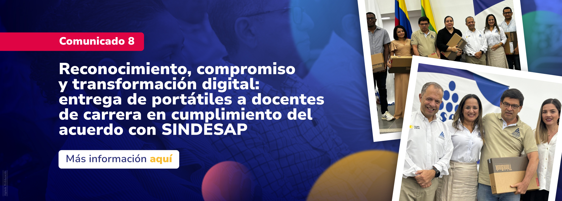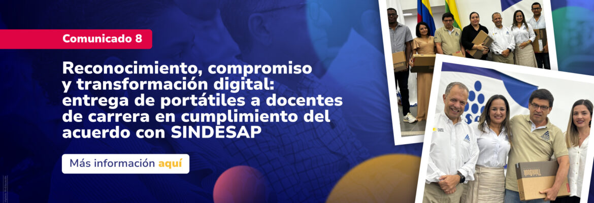 La Escuela Superior de Administración Pública (ESAP), en el marco del acuerdo sindical firmado con las organizaciones sindicales SINTRAPÚBLICA, UNESAP y el Sindicato de Docentes SINDESAP, da cumplimiento a lo establecido en los artículos 57 y 58 del pliego de solicitudes, mediante la entrega de 120 computadores portátiles a nuestros docentes de carrera.