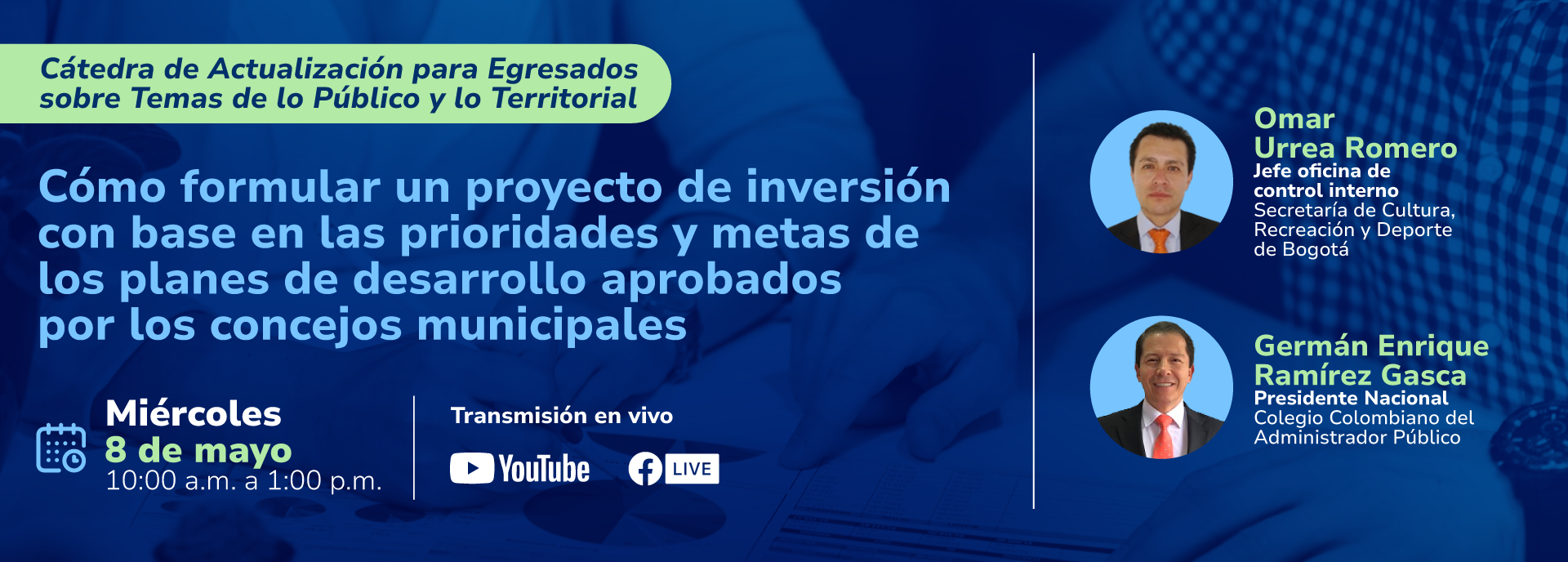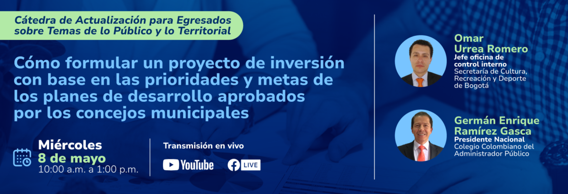De cara a ese interés, la Cátedra revisará las principales recomendaciones pertinentes a las administraciones municipales y departamentales, para que ellas puedan adelantar una gestión integral de la planeación y de la ejecución de proyectos de inversión, conforme las disposiciones legales vigentes aplicables, las metodologías y recomendaciones de los organismos nacionales de dirección y de regulación de la materia y las buenas prácticas identificadas en vigencias anteriores en entidades públicas que han alcanzado resultados exitosos en la gestión de sus proyectos.