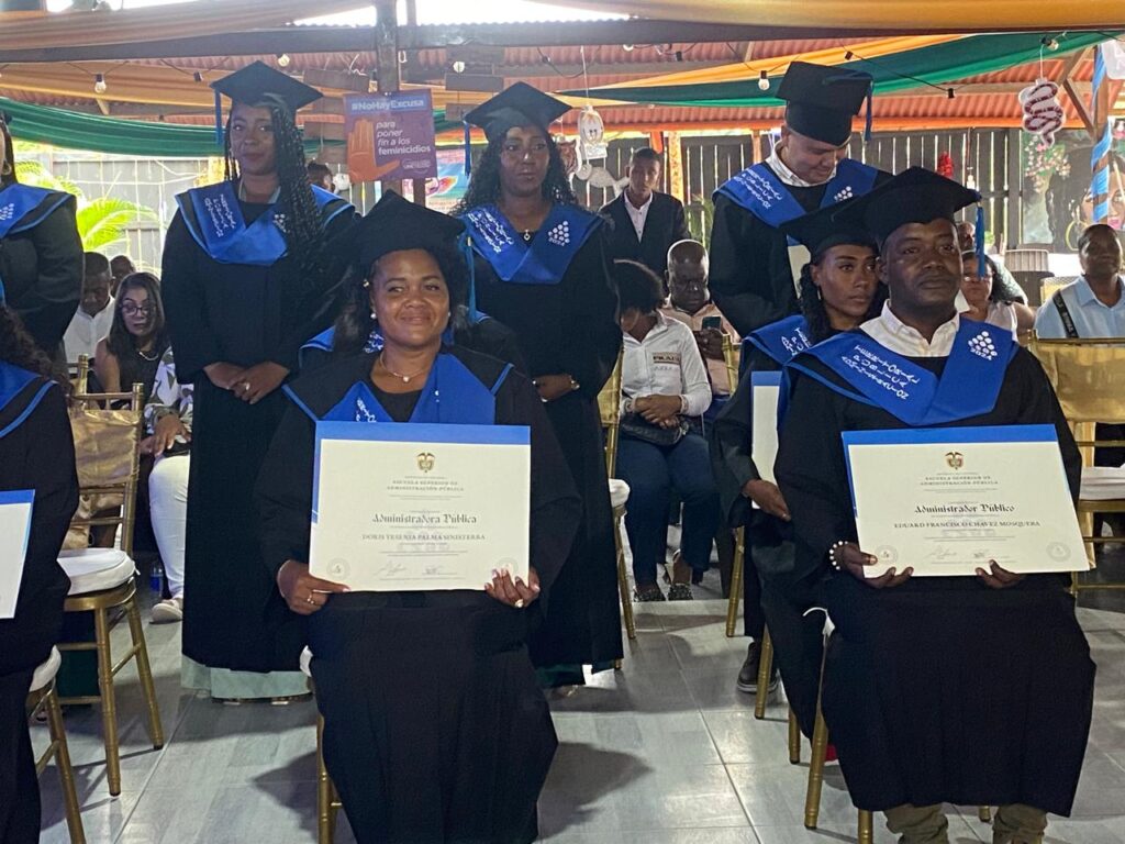Pasto, 4 de diciembre de 2024 (COMUNICACIONES ESAP). La Territorial Nariño, Alto Putumayo celebró con entusiasmo la graduación de 16 nuevos administradores públicos en la ciudad de Tumaco y 9 en la ciudad de Pasto, consolidando un importante avance académico en la región. Este logro no solo refleja el esfuerzo y dedicación de los graduados, sino que también constituye una inversión crucial en el futuro de la región al preparar a estos nuevos profesionales para asumir roles fundamentales en la gestión pública y contribuir al desarrollo integral de sus comunidades.