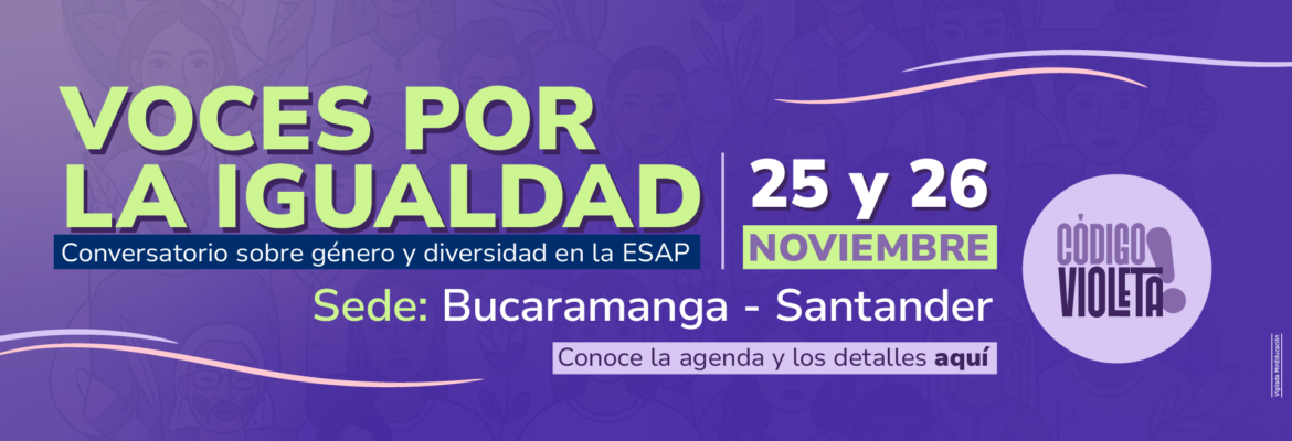 El martes 25 y el miércoles 26 de noviembre, la Dirección Territorial de Santander de Escuela Superior de Administración Pública (ESAP), en Bucaramanga, será anfitriona del encuentro ‘Voces por la Igualdad: conversaciones sobre género y diversidades’, un espacio para fortalecer la participación activa de estudiantes, docentes, personal administrativo y aliados estratégicos en la construcción colectiva de la política institucional de género y diversidades.