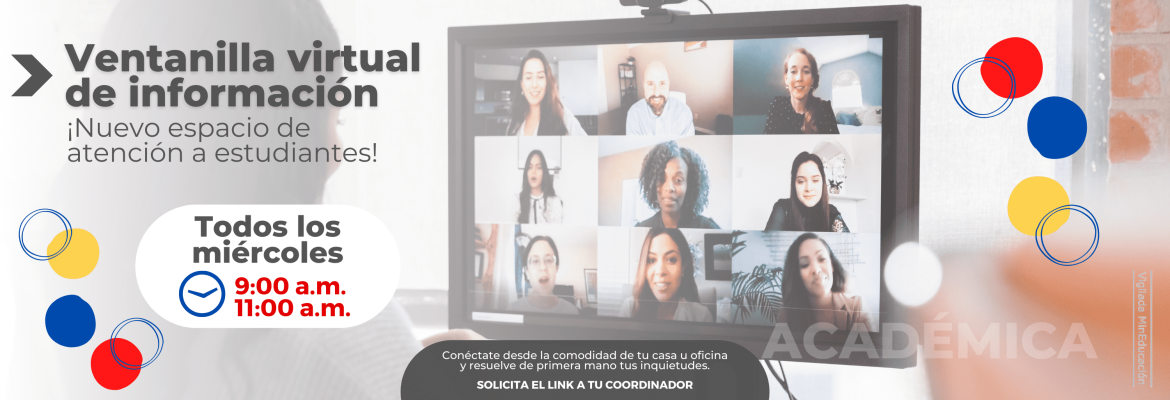De esta manera, la comunidad estudiantil está invitada a participar todos los miércoles en la ventanilla virtual de información para aclarar o solucionar eventualidades que estén generando coyunturas en su formación académica.