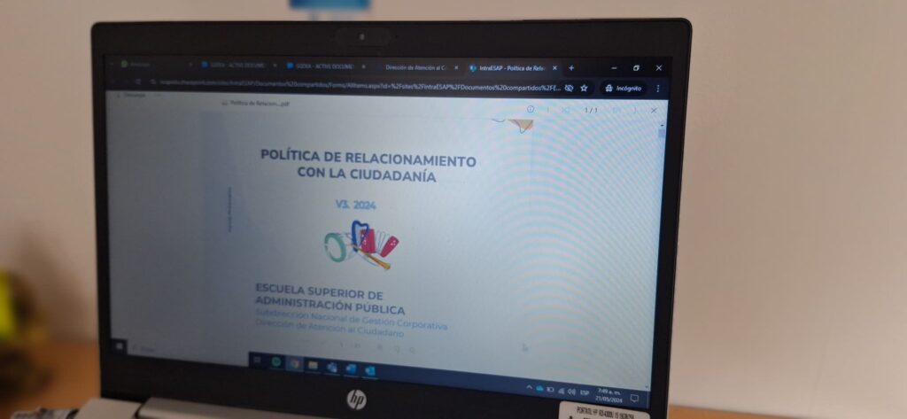 Bogotá D. C., 21 de mayo de 2024. Con el fin de fortalecer el relacionamiento con los grupos de valor, los grupos de interés y la ciudadanía que se interrelacionan con la Escuela Superior de Administración Pública, ESAP, la Dirección de Atención al Ciudadano da a conocer la “Política de Relacionamiento con la Ciudadanía 2024”, con el objetivo de contribuir con el apropiado acceso a los servicios educativos de la institución e igualmente fortalecer la confianza con la ciudadanía.